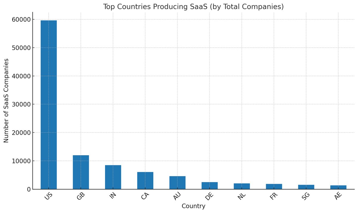 While the U.S. dominates, other countries are building strong SaaS ecosystems: